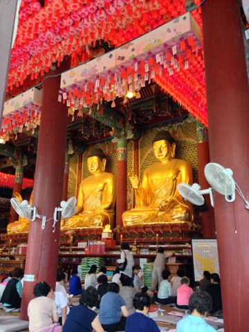 We peeked inside at the worshippers (which evoked a fond familiarity from my days in Thailand):
